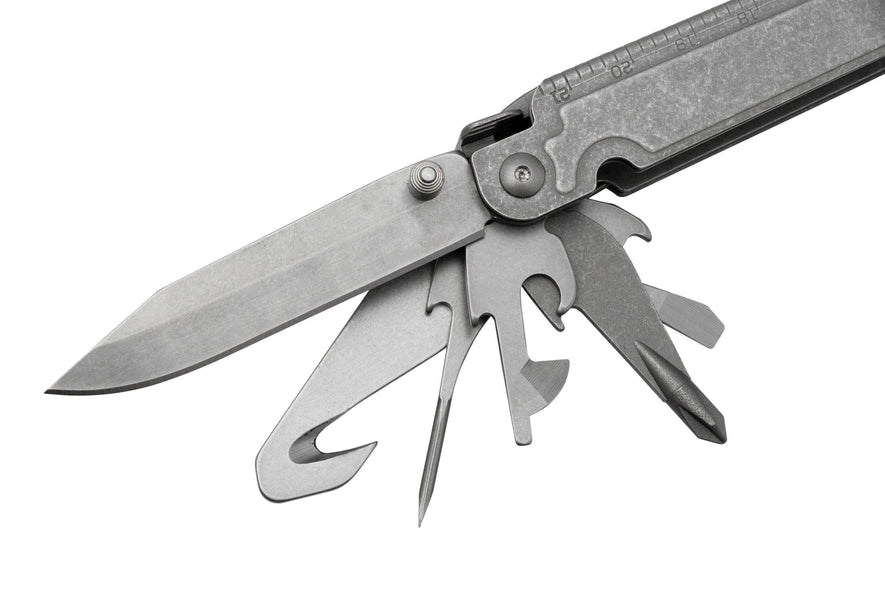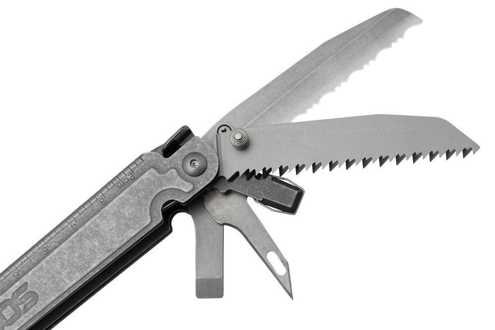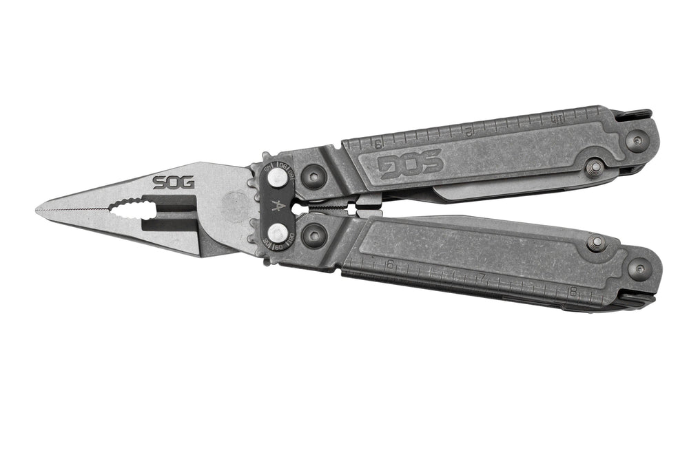 Il SOG PowerAccess Assist MT Stonewashed è un multiutensile SOG grande e completo. Con 21 strumenti avrai tutto il necessario per svolgere qualsiasi attività. Il solido manico in acciaio con un robusto meccanismo di blocco posteriore per tutti gli utensili ispira davvero fiducia. Le pinze sono realizzate in acciaio 5CRMOV15. Si tratta di un tipo di acciaio molto duro e resistente alla corrosione. La cerniera della pinza è arricchita da dentellature che consentono di esercitare una maggiore forza su di essa. Un'incredibile invenzione per la quale i multi-tools SOG sono noti. Una funzione notevole è il portabit magnetico da 1/4" aggiunto alla testa del multiutensile. Troverai questo driver sulla parte superiore del multi-tool quando è chiuso. Grazie al magnete nel driver non sarai disturbato dalla caduta degli inserti. Incredibilmente pratico!