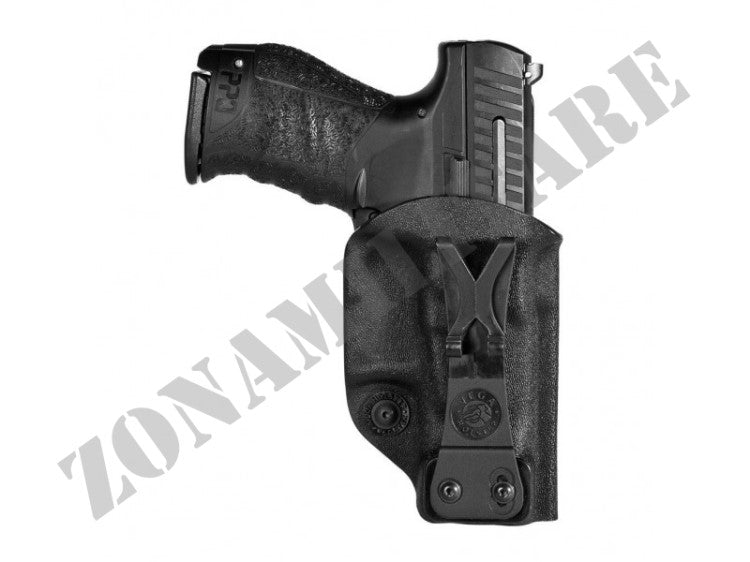 Fondina interna in polimero termoformato con clip in polimero stampato a iniezione che permette la regolazione della inclinazione ed il porto sia sopra che sotto camicia per un occultamento completo.