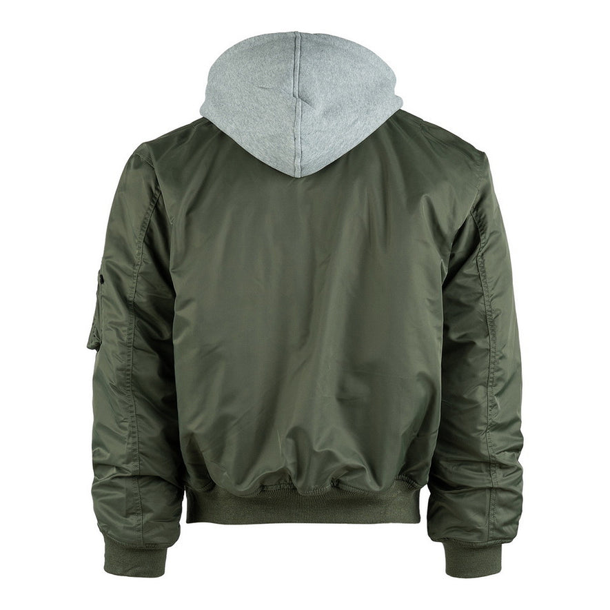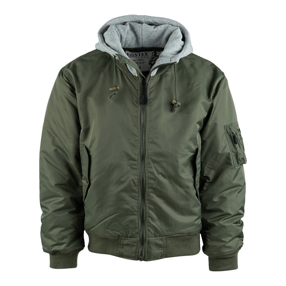 Scopri il nostro elegante e autentico bomber con cappuccio MA-1. Questa giacca versatile presenta due tasche interne con cerniera, una pratica tasca sulla manica destra e due tasche con chiusura a bottone. Realizzata con materiali di alta qualità, offre comfort e resistenza. Perfetta per ogni stagione e occasione, questa giacca bomber coniuga alla perfezione moda e funzionalità. Aggiungi questo capo essenziale al tuo guardaroba e scopri il perfetto mix di stile e praticità.