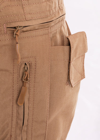 • 2 tasconi altezza coscia laterali, con chiusura a zip YKK superiore e da un lato. All’interno due tasche e 2 fasce elastiche blocca oggetto, all’esterno tasca portacaricatore con chiusura a nastro con velcro.