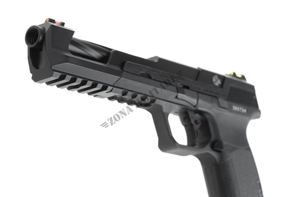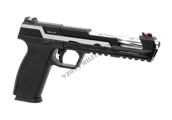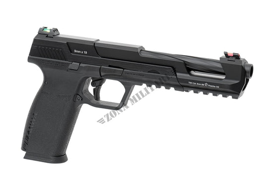 Realizzata in leghe di metallo e polimeri di alta qualità, questa replica lunga 245 mm è alimentata da un caricatore staccabile con una capacità di 20 colpi. La pistola pesa circa 800 g e spara in modalità a fuoco singolo. Grazie alla natura a gas della pistola, la replica ha un sistema blow-back che simula il movimento del carrello in metallo: si ferma nella posizione posteriore dopo l'ultimo colpo. Una delle caratteristiche uniche è una valvola del gas ad alto flusso dotata di un filtro di dimensioni micro. È responsabile del corretto dosaggio del gas verde nella forma volatile. Un altro aspetto è la nuova valvola del cilindro in ceramica che impedisce il congelamento del pezzo menzionato. Ciò rende la replica più economica e sicura da usare.
