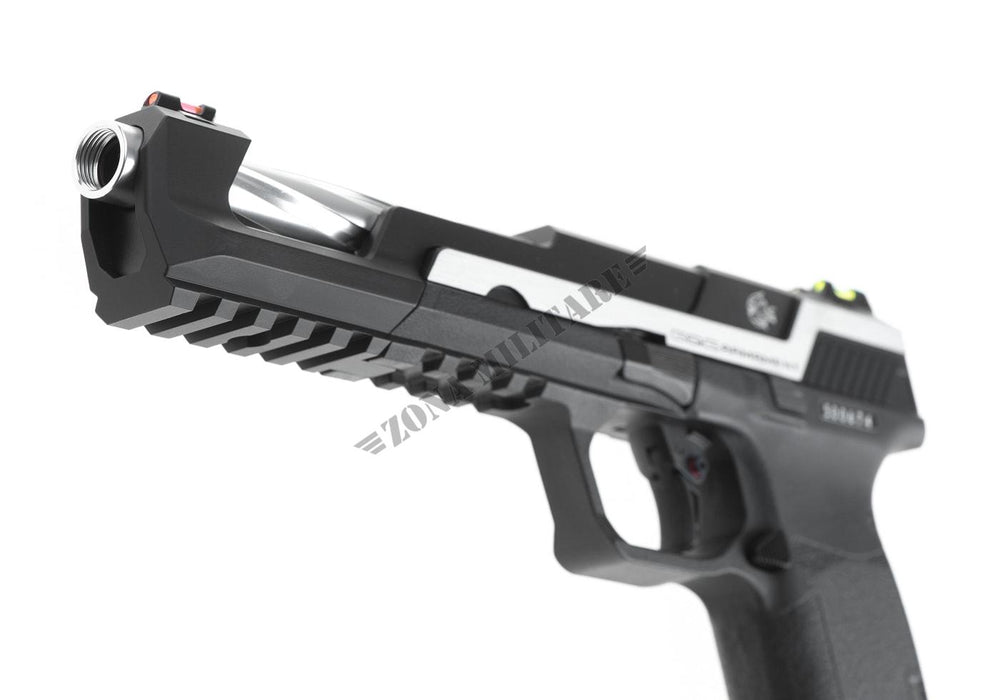 Il carrello in metallo leggero e modernizzato è lavorato con porte di sfiato sulla parte superiore e laterale e mirini in fibra ottica migliorati.
