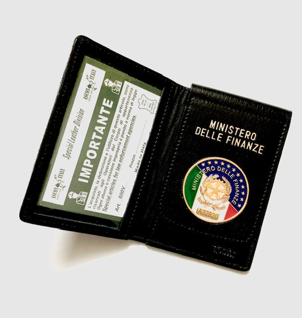 PORTAFOGLIO MINISTERO DELLE FINANZE IN PELLE CON PLACCA E SCRITTA SUPERIORE ASCOT Portafoglio Portadocumenti 100% Pelle di altissima qualità con placca in metallo smaltato MINISTERO DELLE FINANZE. La scritta MINISTERO DELLE FINANZE e' stampata...