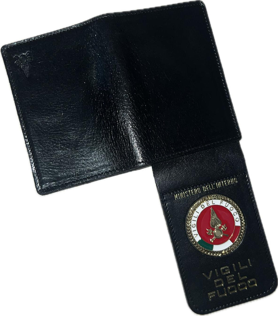 Portafoglio Vigili Del Fuoco CON PLACCA IN PELLE Portafoglio Vigili del fuoco con scritta Ministero dell' Interno superiore e scritta Vigili del fuoco sotto la placca .Con tasca...