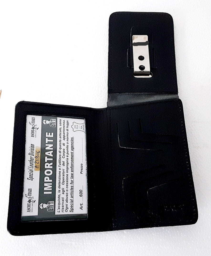 PORTAFOGLIO CON PLACCA A PATTELLA FISSA POLIZIA AMMINISTRATIVA VEGA HOLSTER POLIZIA AMMINISTRATIVA Porta tesserino portafoglio Polizia Amministrativa Porta tessera portafoglio in pelle, con porta carte di credito e scompartoper banconote. La vendita...