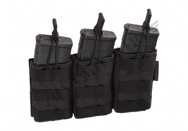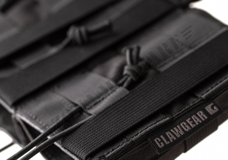 Sistema ad estrazione rapido con elastici e fibbia incorporati.