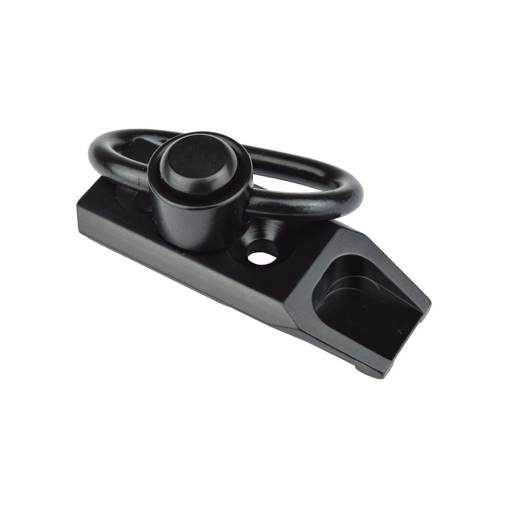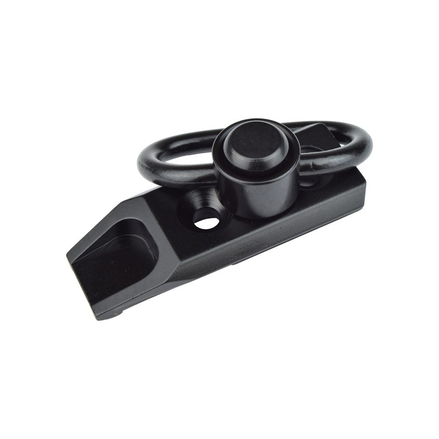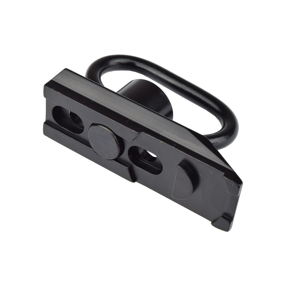 QUESTO AGGANCIO PERMETTE DI COLLEGARE UNA CINGHIA DUE PUNTI INNESTANDO UN AGGANCIO NELLA PARTE ANTERIORE DEL FUCILE CON IL RIS KEYMOD.