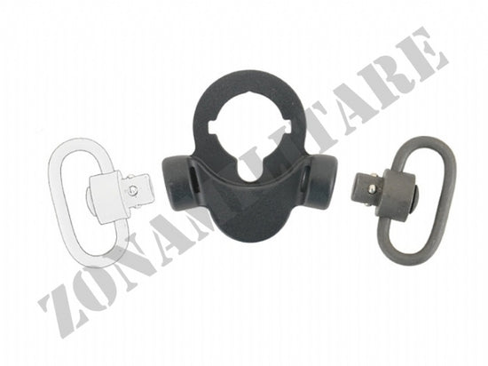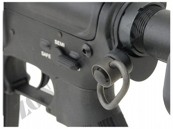 Sling attachment fits AEG replicas with extensible tactical stock.