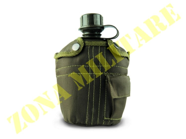 Borraccia Americana con capacità da 1 litro, completa di custodia e agganci tipo "Alice" in metallo nella parte posteriore, per facilitarne l'installazione su cinture o su impianti tipo M.O.L.L.E.