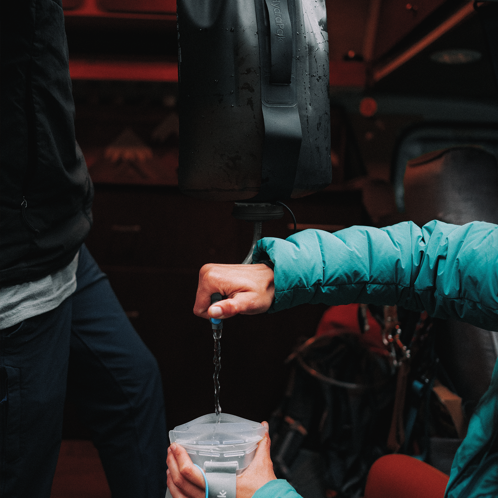 Una soluzione leggera e versatile per lo stoccaggio dell'acqua per gruppi di medie e grandi dimensioni nell'entroterra. Il Seeker 10L è compatibile con la maggior parte dei filtri abilitati Plug-N-Play e include un rubinetto da campeggio HydraPak che semplifica l'erogazione dell'acqua. Riponi il rubinetto da campeggio negli appositi alloggiamenti, arrotolalo e riponilo nella sacca inclusa.