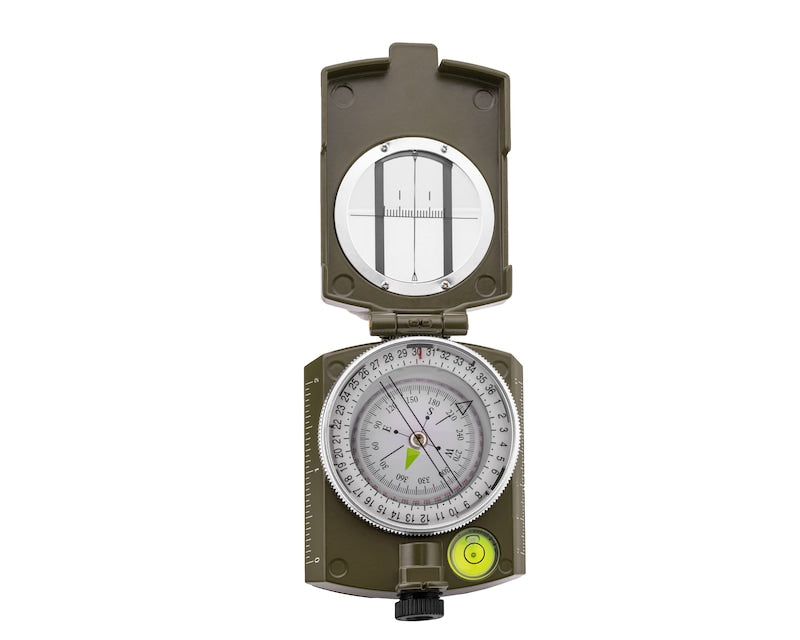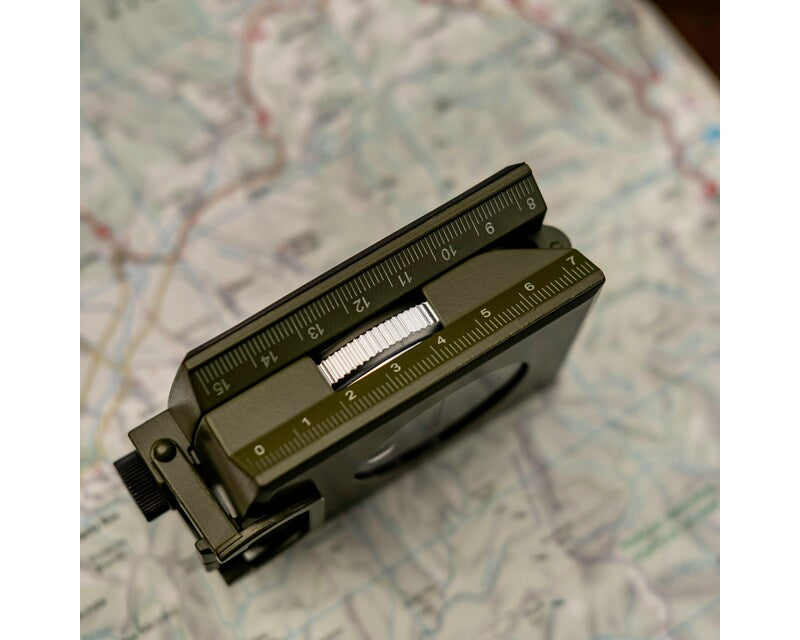 La combinazione delle funzioni di bussola direzionale e cartografica lo rende uno strumento versatile per viaggiatori e appassionati di sopravvivenza. Una speciale tacca di mira e un mirino anteriore consentono una determinazione precisa della direzione, mentre la scala laterale sulla custodia pieghevole consente letture accurate della mappa. Una volta chiuso, la custodia in alluminio protegge efficacemente il vetro da eventuali danni, consentendo comunque un rapido controllo della direzione.