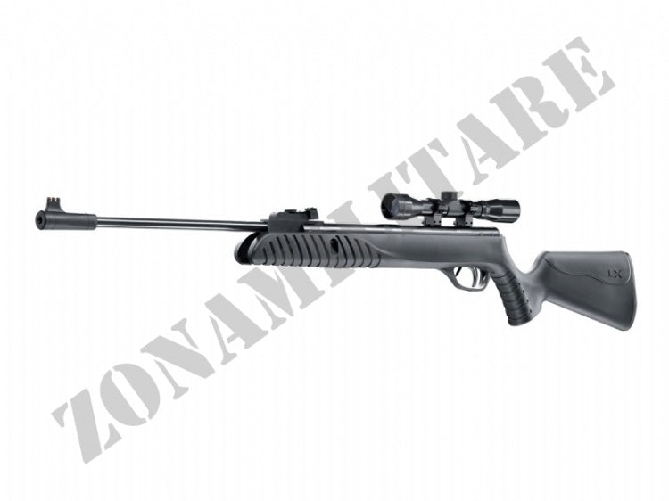Semplice e potente: qui il design dice tutto. L'UX Syrix ti offre tutto ciò che ti aspetti da un fucile break-barrel fin da subito. Per un controllo totale puoi scegliere tra un cannocchiale 4 x 32 e un mirino in fibra ottica regolabile. Le superfici strutturate sull'impugnatura e sull'astina del corpo in polimero completamente nero offrono una buona presa anche sotto la pioggia. Quindi disimballalo, spara e divertiti.