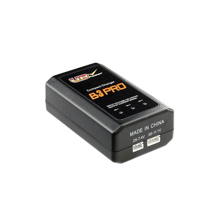 Caricabatterie B3 PRO compatto per batterie Li-Po/Li-Ion a 2-3 celle. Quindi per batterie da 7,4 V e 11,1 V. Adatto solo per celle Li-Pol caricate tramite il cavo di servizio.