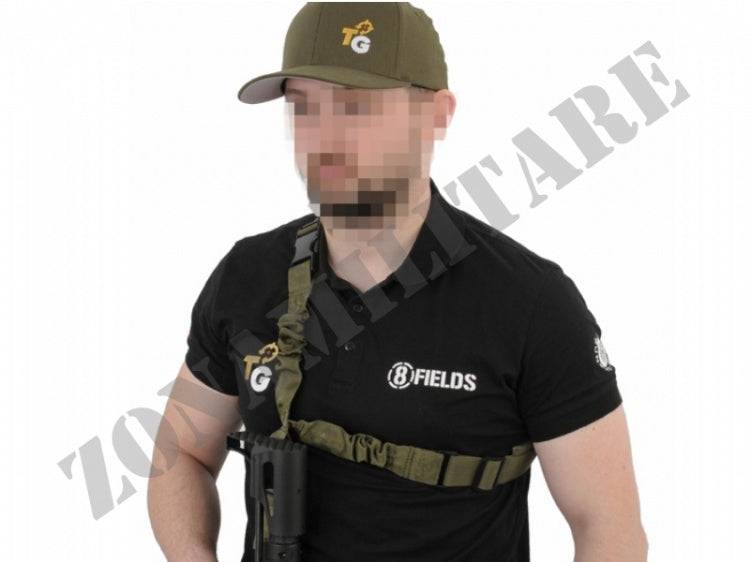 Imbracatura imbottita a ad un singolo punto di ancoraggio arma per tiratori destrorsi e mancini.