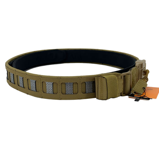 Conquer presenta una cintura realizzata in materiale Tegris di alta qualità per la massima resistenza e leggerezza. È dotata di una fibbia magnetica per una chiusura rapida e sicura, un sistema di cordino tagliato al laser e un sistema a MM per una compatibilità completa e la possibilità di aggiungere tasche e accessori. Include una cintura interna regolabile in velcro per una vestibilità perfetta .