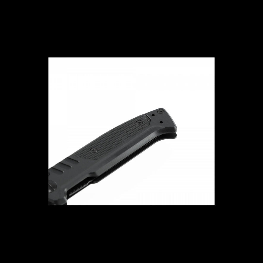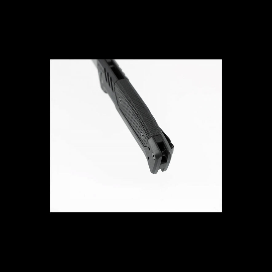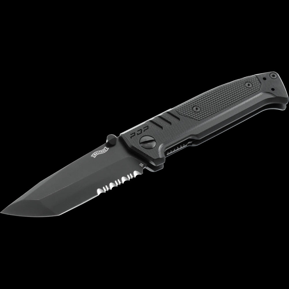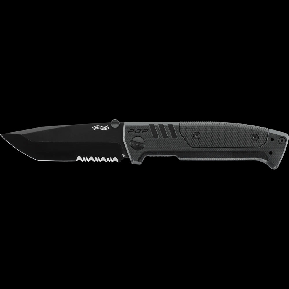 Il Walther PDP Tanto Folder è un coltello tattico ispirato alla famosa pistola Walther PDP. È dotato di una lama Tanto in acciaio inossidabile D2 rivestita e parzialmente seghettata per un'eccezionale resistenza al taglio. Il coltello è dotato di piastre in acciaio inossidabile con chiusura Linerlock per un'apertura sicura e un bloccaggio affidabile. L'impugnatura è realizzata in G10 con rivestimento in GRP monoblocco. Il pulsante rimovibile su entrambi i lati consente un'apertura rapida e semplice. Questo modello include una clip e un passante per cinghia di sicurezza.
