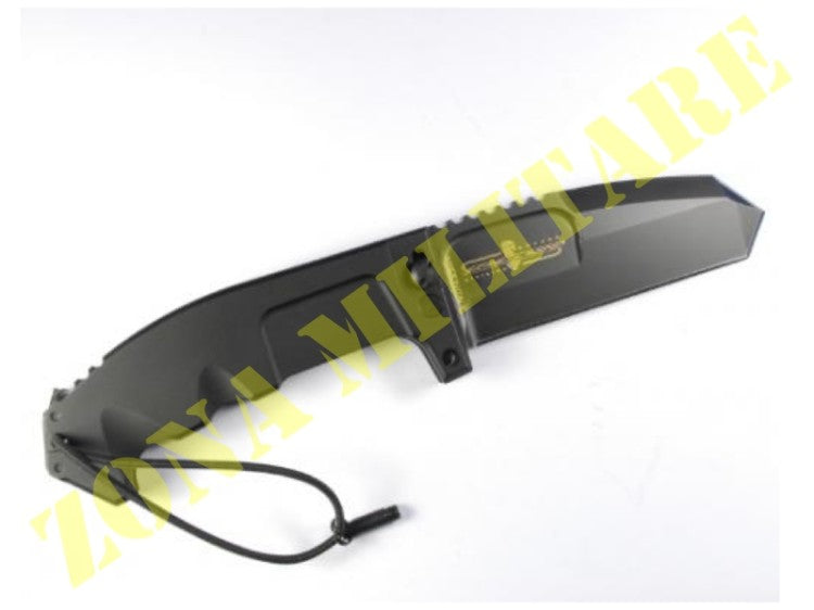 La finitura della lama è TESTUDO, ovvero trattata al carbonitruro di Zirconio in colore nero. La lama è molto robusta perché spessa e con arrotatura è piatta. Dotato di un fodero in cordura 1000 DEN che contiene una pietra diamantata per l'affialtura da campo. E' un coltello realizzato con il massimo della qualità.