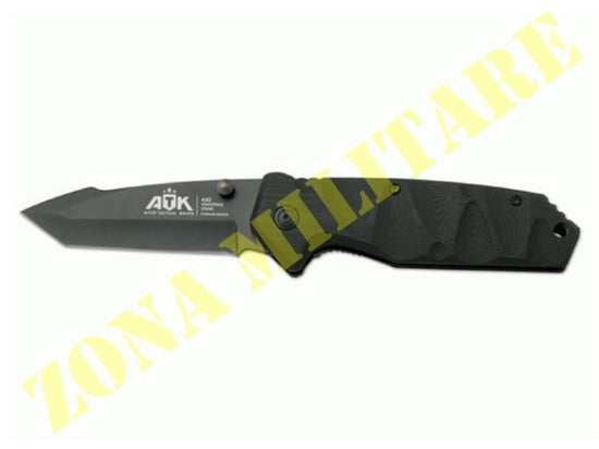 Coltello ATK con impugnatura ergonomica in ABS. Sicura ad apertura. Il coltello è dotato di fascetta da cintura posteriore e foro per l'applicazione di laccetti o moschettoni. Colorazione nera completo di fodero in cordura per il trasporto a cintura.