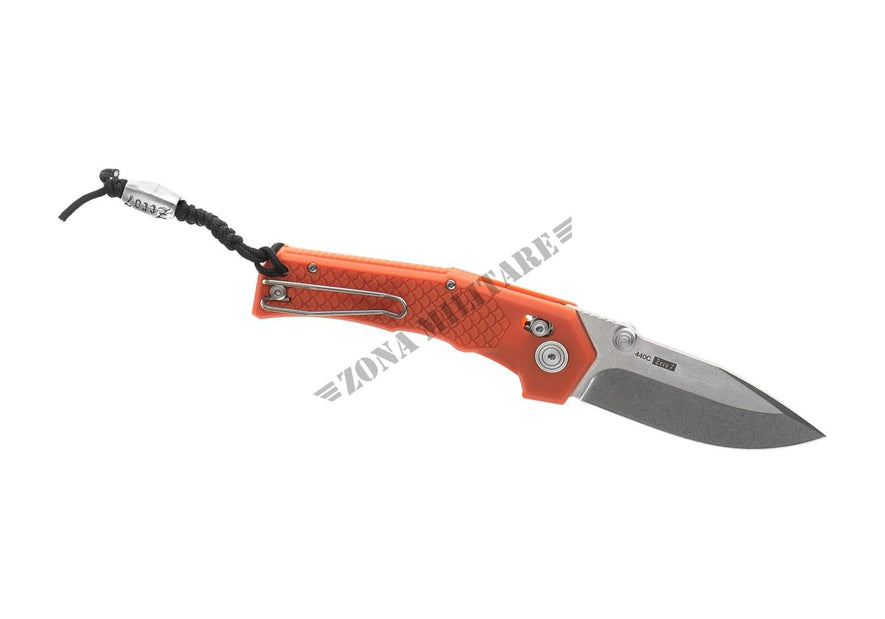 La lama è realizzata in acciaio 440C spesso 3,5 mm con rivestimento in nitruro di titanio e dotata di un affidabile perno per il pollice per un rapido utilizzo.