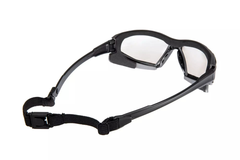 Occhiali protettivi di altissima qualità realizzati in resistente policarbonato negli Stati Uniti da PYRAMEX. Il modello Highlander PLUS si differenzia dal modello base per l'utilizzo di una montatura speciale dotata di una schiuma in grado di proteggere gli occhi da polvere e sporcizia. Il telaio può essere staccato a piacimento. Oltre alle tradizionali estremità delle aste, nel set è incluso anche un nastro elastico che tiene gli occhiali in posizione sulla testa dell'utente. La lente antigraffio ha una protezione UVA/B/C del 99% dai raggi solari.