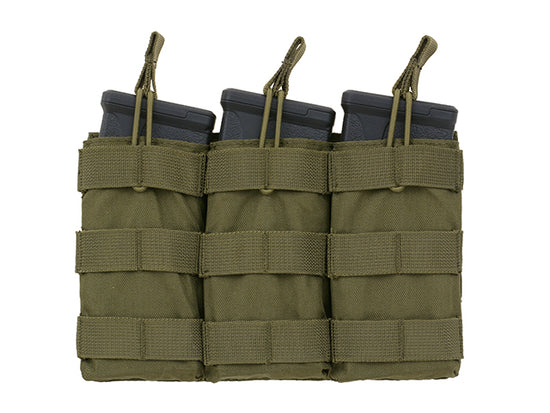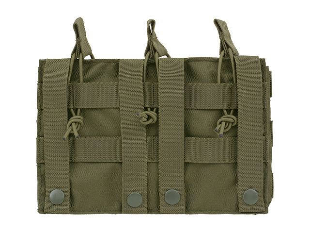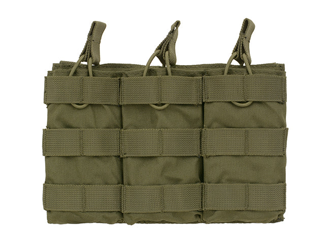 Porta caricatori modulare aperto che contenere caricatori stile 5.56 (M4 / AR-15 / M16 / ACR / FAMAS / SCAR-L / TAVOR / SA80 / Galil / Type 89 / F2000 / AUG) o molti altri accessori. Il design aperto fornisce una ricarica rapida e un cavo di gomma aggiuntivo con una comoda impugnatura protegge il caricatore dalla caduta. Compatibile con tutte le piattaforme MOLLE.