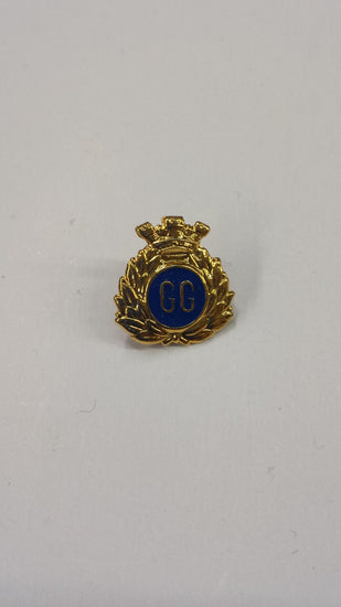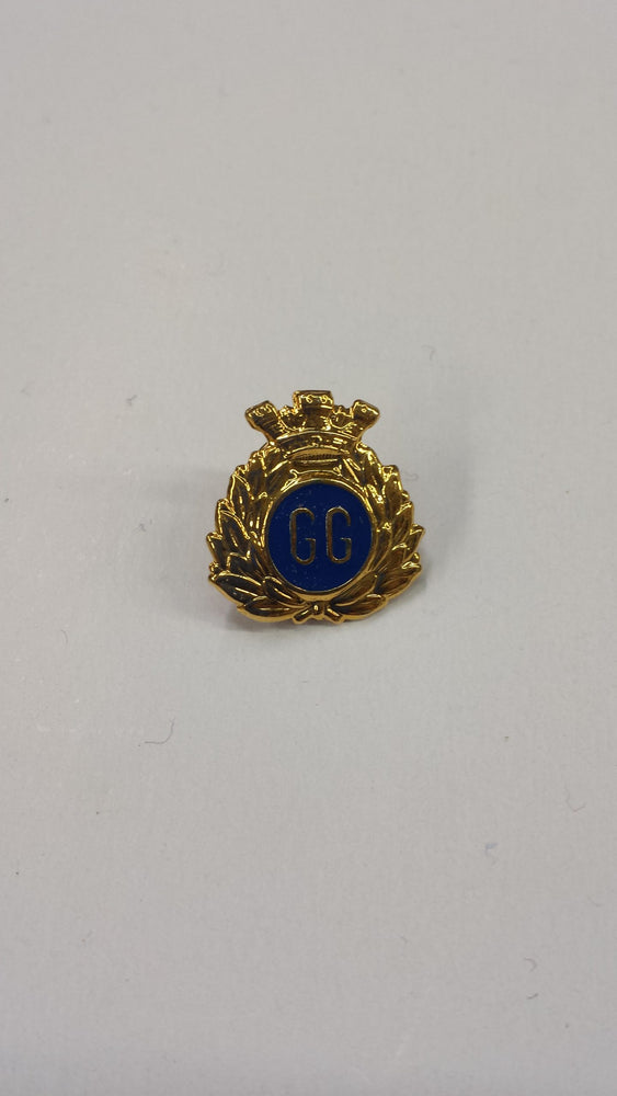 Spilla in metallo con attacco a doppio spillo posteriore.