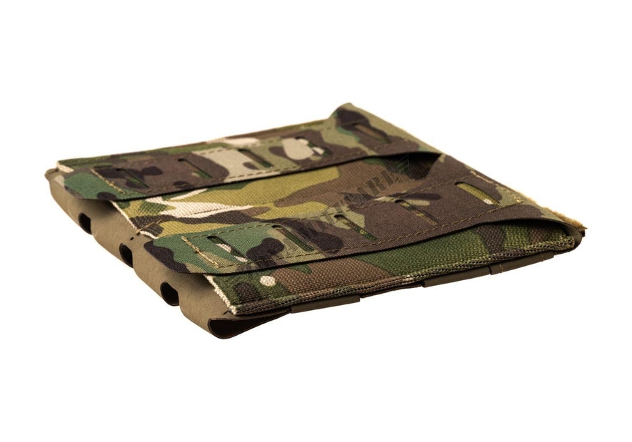 L'ULTRAcomp dal retro della tasca viene portato sotto e intorno alla parte anteriore della tasca e cucito all'elastico anteriore e poi tagliato al laser creando una singola colonna di slot MOLLEminus™ compatibili con MOLLE. Questo dettaglio aggiunge una colonna per tasca per caricatore e aumenta anche la resistenza all'abrasione del bordo inferiore della tasca quando si striscia o si viene abrasi da altri attrezzi.