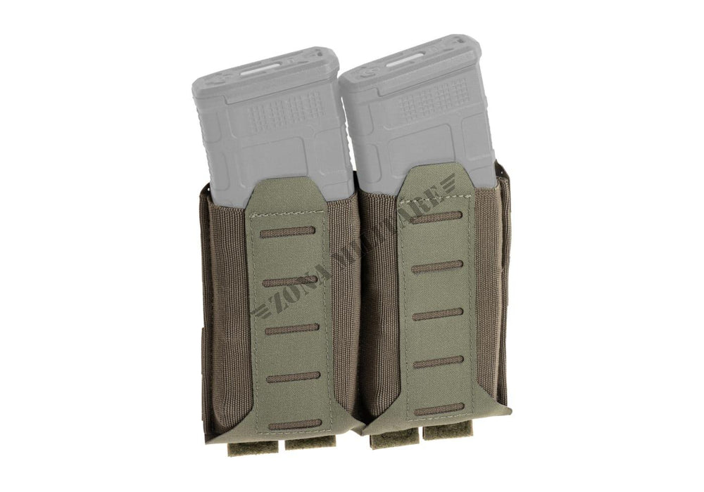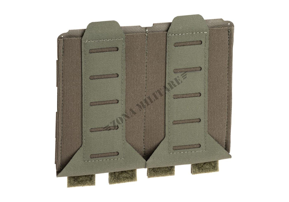 L'ULTRAcomp dal retro della tasca viene portato sotto e intorno alla parte anteriore della tasca e cucito all'elastico anteriore e poi tagliato al laser creando una singola colonna di slot MOLLEminus™ compatibili con MOLLE. Questo dettaglio aggiunge una colonna per tasca per caricatore e aumenta anche la resistenza all'abrasione del bordo inferiore della tasca quando si striscia o si viene abrasi da altri attrezzi.