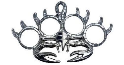 Tirapugni, chiamato anche pugno di ferro, noccoliera, cazzottiera o rosetta, modello "Scorpion" in acciaio inox 440 rinforzato al carbonio, cromato. Il soggetto della lavorazione è il classico tirapugni con anelli arotondati con la forma di scorpione con punte. La misura è unica ed adattabile a qualunque mano. Prodotto dalla Max Knives specializzata per la produzione di coltelli e articoli da difesa personale. Ottimo oggetto da difesa ma anche da collezionare.