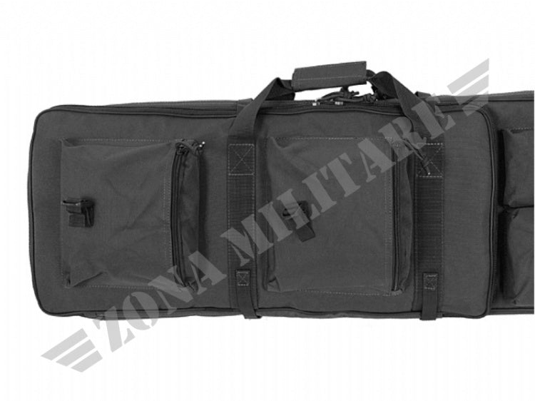 Double rifle gun case have two main pockets, bigger one have 82 cm long and shorter one have 60 cm long. It also can be used as backpack. Longer pocket have also a sleeve inside that can extend gun case for extra 25 cm.