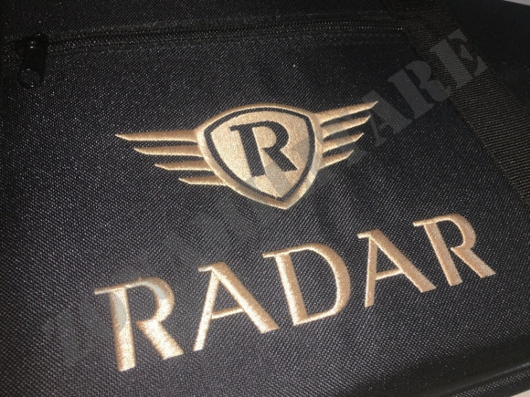 Ricamo nella parte frontale del fodero con logo "Radar".