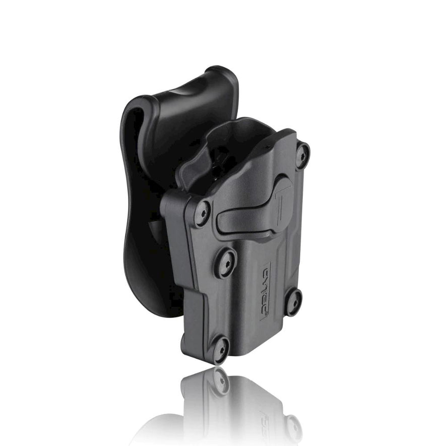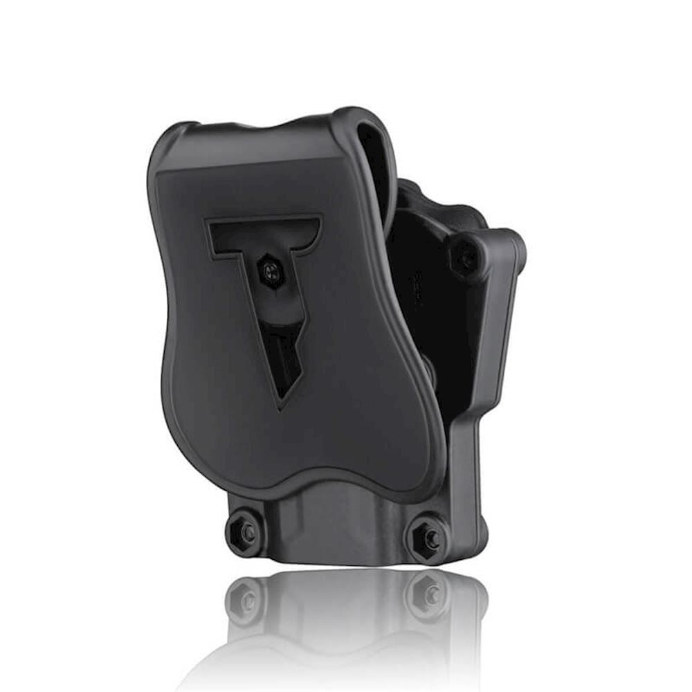 CYTAC presenta il suo nuovo modello di fondina rigida universale, questo modello è caratterizzato dalla sua grande compatibilità con la maggior parte dei modelli di pistola delle principali marche sul mercato, come Tokyo Marui, WE, Umarex, KJ Works tra gli altri, questa compatibilità è ottenuta grazie al suo sistema a vite che ci permette di regolare lo spazio tra la fondina e la replica, in questo modo otteniamo una vestibilità molto buona e salda.
