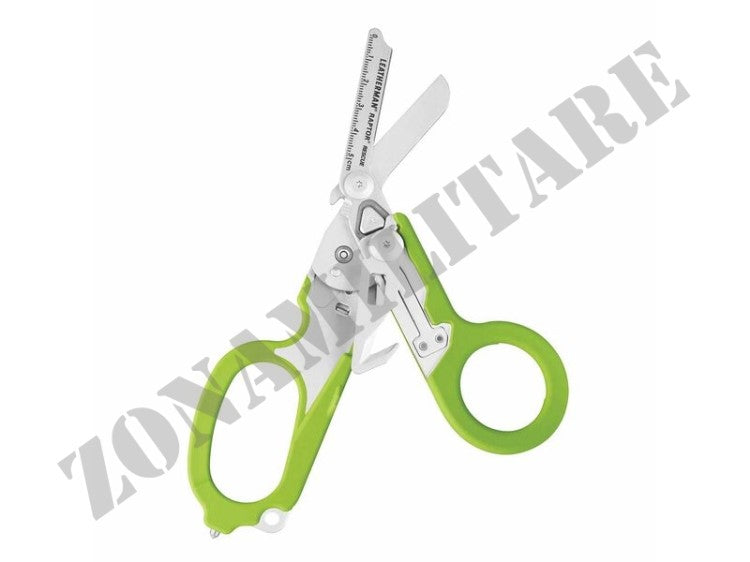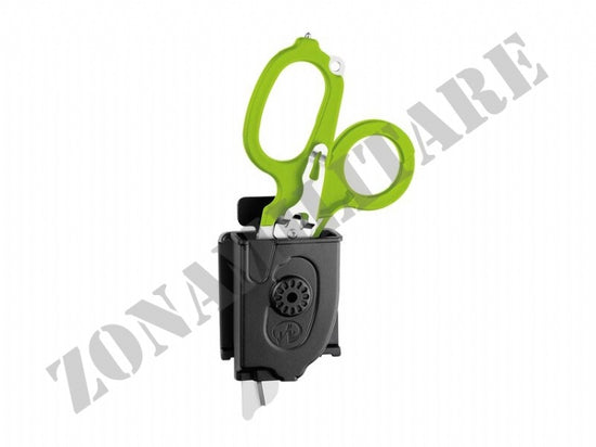 Forbici pieghevoli in acciaio inossidabile con chiave per bombola dell'ossigeno (standard statunitense), taglierine per cinghia e anelli e rompi vetro in carburo. Custodia inclusa.