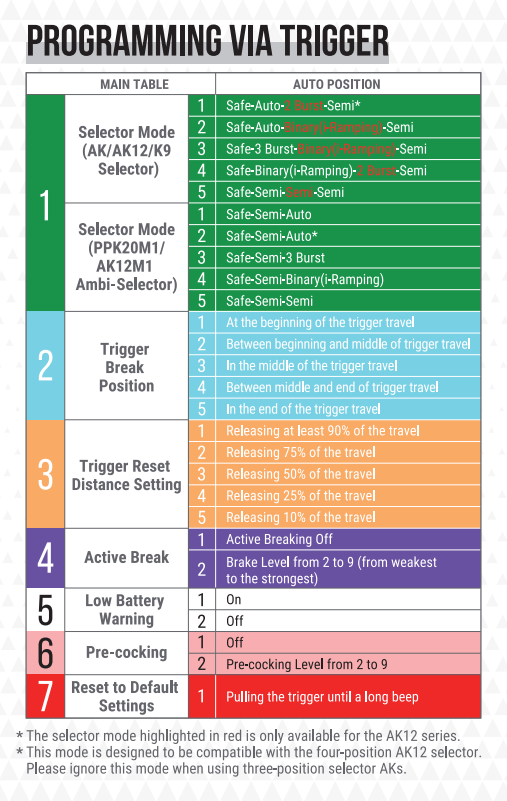 Modalità di sparo: Semiautomatica / 3a raffica (programmabile) / Binaria (programmabile) / Completamente automatica / Sicurezza