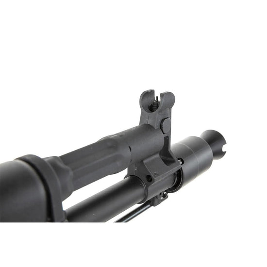 Il gearbox ospita boccole da 8 mm e ingranaggi in acciaio rinforzato. Il pistone in policarbonato leggero è dotato di un'asta in acciaio per una maggiore resistenza. Utilizza inoltre un cilindro di tipo 0 e un cut-off in acciaio, nonché una camera hop-up rotante di precisione che si integra perfettamente con la canna di precisione da 6,03 mm di alta qualità.