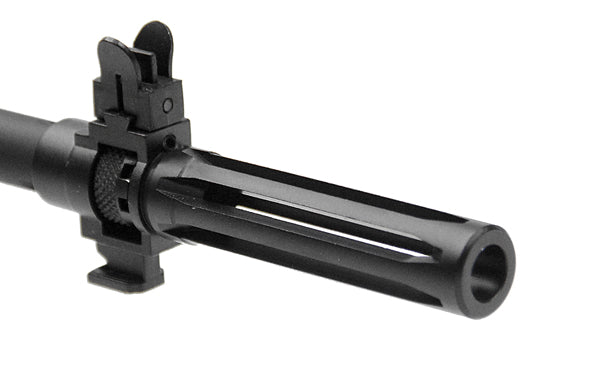 Questa è la versione di G&G Armament dell'iconico M14 americano. Il fucile è stato realizzato con grande attenzione ai dettagli e l'uso di materiali di qualità ne aumenta il realismo. La copertura della canna è in plastica, mentre altri componenti come la canna esterna, la camera di culatta, il coprifiamma e il calciolo sono in metallo.