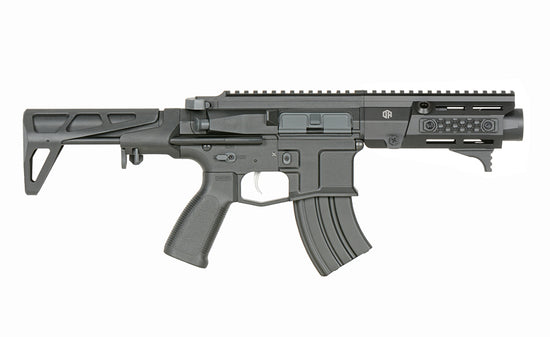 A prima vista, il DEK762 sembra un AR-15 standard, ma non lo è. È una rivoluzione in termini di carabine sub-compatte camerate in 7,62x39 / 300 Blackout. Double Eagle, il produttore, si è concentrato sull'utilizzo dei migliori materiali per creare una replica maneggevole ed ergonomica. Per questo, hanno utilizzato polimero di nylon rinforzato per il corpo del fucile da softair e alluminio lavorato a CNC per il paramano della replica, ottenendo una piattaforma solida con un peso di circa 2,3 kg .