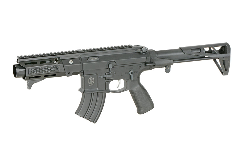 Il DEK762 di Double Eagle è progettato tenendo a mente ergonomia ed efficacia, offrendo una replica airsoft modulare. Sulla parte superiore della replica c'è una guida Picatinny da 22 mm che consente il montaggio di varie ottiche . Il paramano da 6,5 pollici ha un sistema di montaggio per accessori Mlock ed è dotato di due punti di attacco QD per l' uso con imbracatura tattica . Inoltre, il produttore include un pannello di copertura del paramano e un fermo per la mano con il DEK762. L' interruttore di selezione ambidestro lo rende facile da usare sia per gli utenti destri che mancini. Il calcio in stile PDW ha 4 posizioni regolabili e ha un punto QD nella parte anteriore.