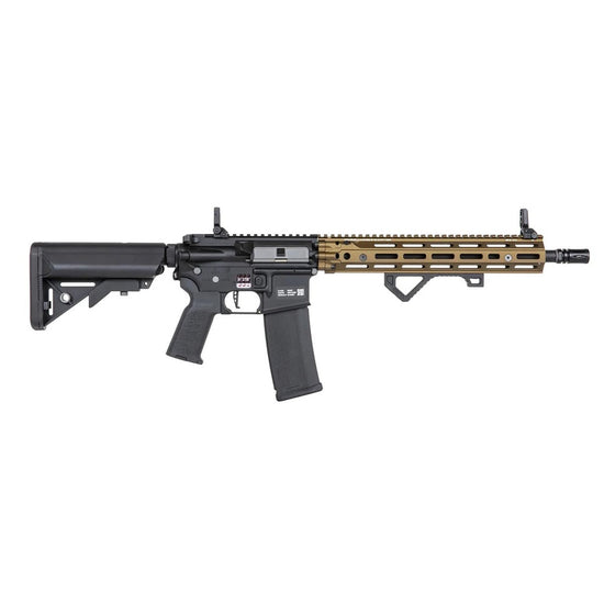 Il nuovo fucile PRIME SA-P28 Aster II da 12,5" di Specna Arms si distingue per il suo design sorprendente ispirato ai leggendari fucili Colt, in particolare ai modelli in stile MK18 prodotti dalla famosa azienda americana Daniel Defense, ma con la particolarità di avere un paramano ridisegnato utilizzando la piattaforma M-Lok. Questo paramano è caratterizzato da un design molto più leggero e sottile che consente una presa molto più comoda e una migliore mobilità per l'operatore. D'altra parte, grazie al suo design possiamo installare sia accessori di tipo M-Lok che segmenti di slitta Picatinny nelle posizioni e nelle posizioni che più ci si addicono, dandoci la possibilità di installare un'ampia varietà di accessori come impugnature, torce elettriche, laser o persino sistemi AM/PEQ. Il corpo ha un design molto robusto e solido accompagnato da un'impugnatura appositamente progettata per offrire la massima ergonomia possibile, a sua volta ha una superficie antiscivolo che ci offre una presa molto più salda e confortevole. Infine, il calcio di tipo crane è regolabile in più posizioni, offrendoci al contempo un'ampia capacità di stoccaggio che ci consente di utilizzare un'ampia varietà di batterie.