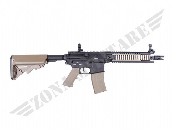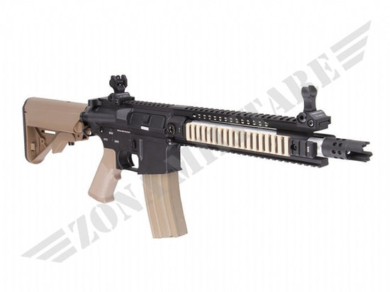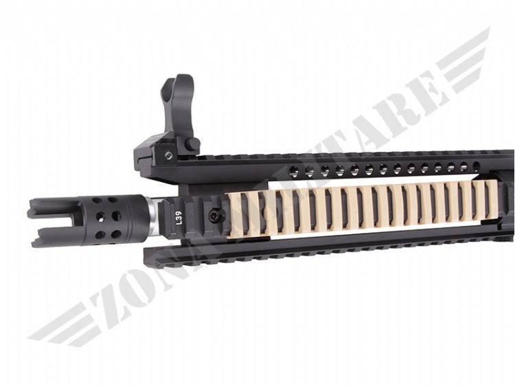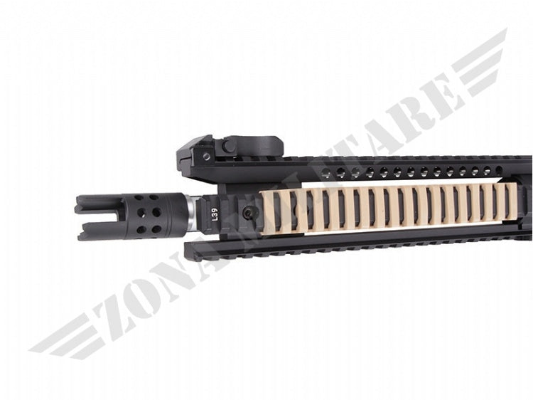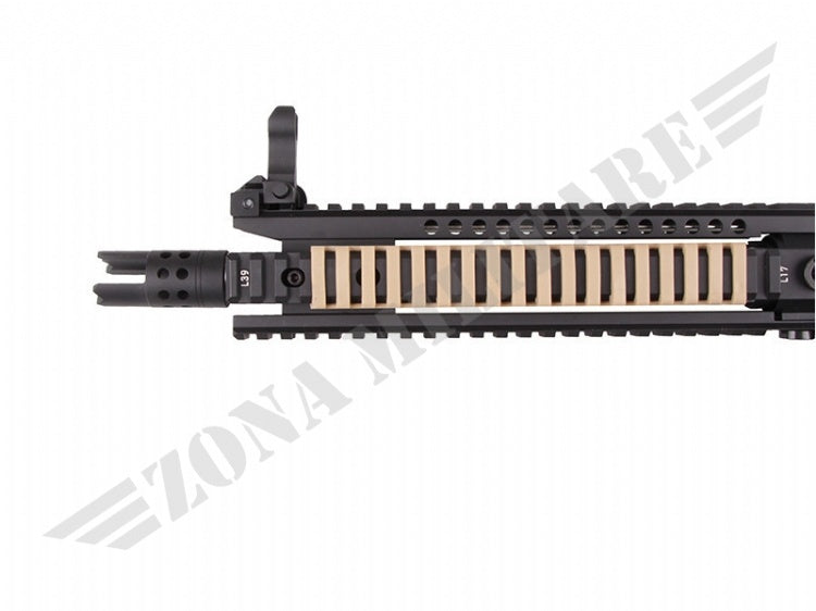The replica is equipped with a top 22mm RIS rail, a set of front 22mm RIS rails and an adjustable stock. The top RIS rail holds the flip-up type iron aiming sights which can be easily detached and replaced with any optical-electronic aiming devices. Thanks to the collapsible stock which is ended with a anti-skid stock’s foot, it is possible to adapt the replica’s length to the built and the preferences of the shooter. The default muzzle flash-hider is placed on a 14mm counter-clockwise threadwhat allows the attachment of a sound suppressor in its place.