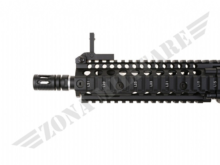 The replica is equipped with a top 22mm RIS rail, a set of front 22mm RIS rails and an adjustable stock. The top RIS rail holds the flip-up type iron aiming sights which can be easily detached and replaced with any optical-electronic aiming devices. Thanks to the collapsible stock which is ended with a anti-skid stock’s foot, it is possible to adapt the replica’s length to the built and the preferences of the shooter. The default muzzle flash-hider is placed on a 14mm counter-clockwise thread what allows the attachment of a sound suppressor in its place.