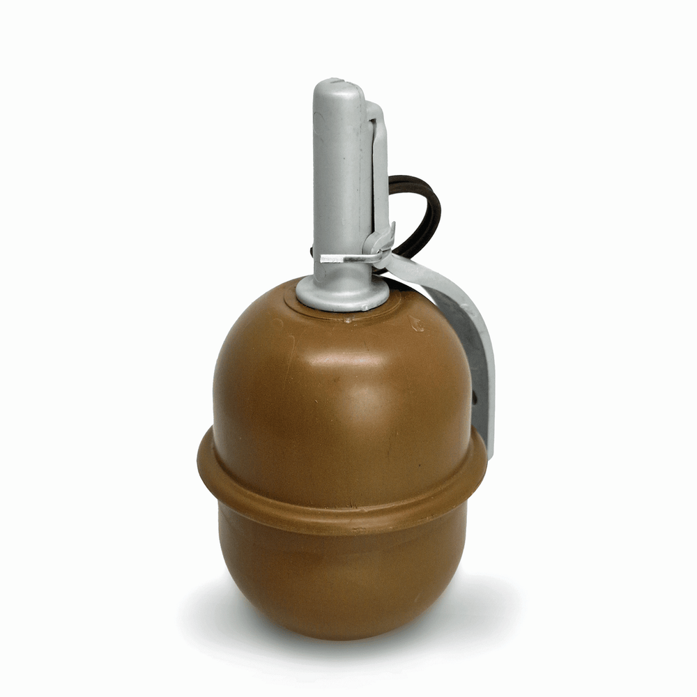 Granata di simulazione e addestramento con perno attivo da utilizzare in giochi sportivi militari di strikeball, ricostruzioni militari e abilità di acquisizione sicura nella gestione della granata tipo RGD-5.
