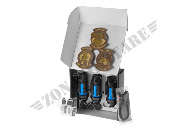 The 3x Cyclone Grenade System contains everything you need to demolish your competition on the field. We’ve included 3 of our Cyclone Impact Grenades, 3 HANN Grenade Holsters, 3 Lanyard Reels and 3 Limited Morale Patches. Also Includes 3x Grenade Oils and 3x Grenade Skin Sets.