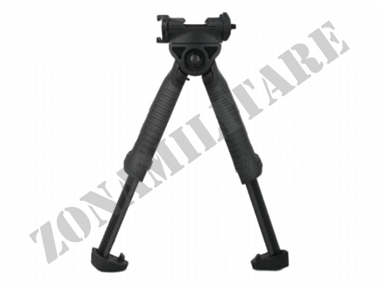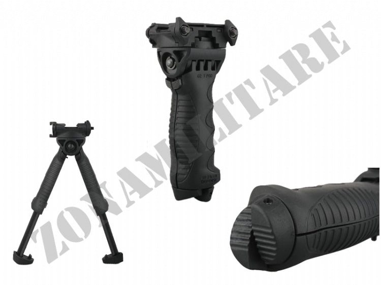 Premendo sui pulsanti presenti sull'impugnatura, questa scatta e si apre a bipiede, permettendo di utilizzare l'accessorio sia come impugnatura che come bipode.