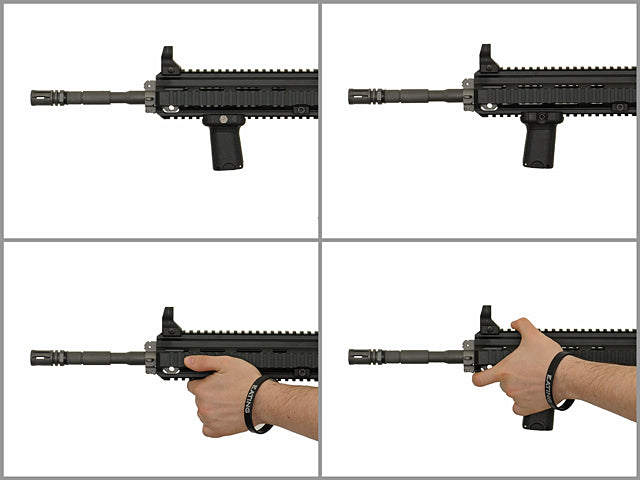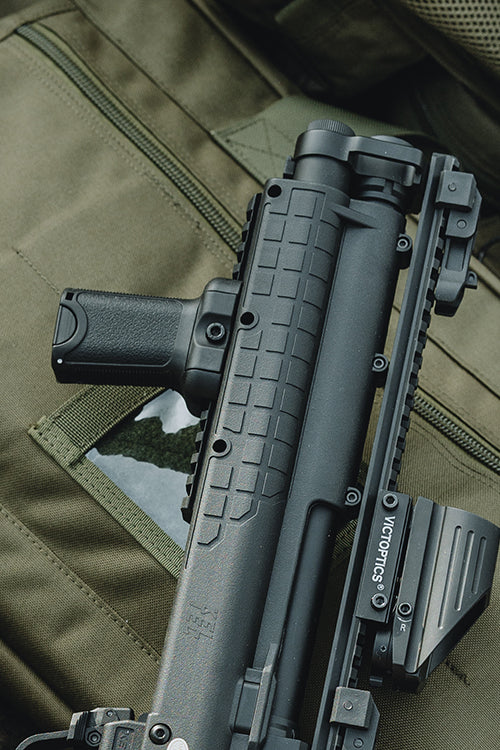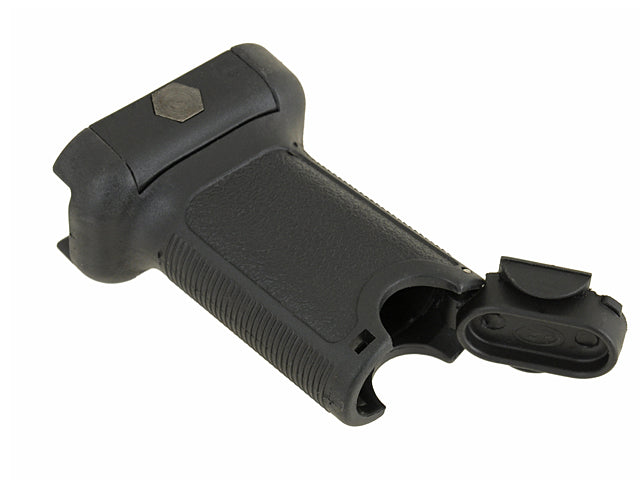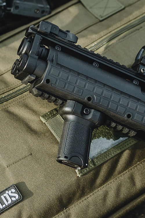 L'impugnatura verticale è progettata in modo tale da consentire al tiratore di tenere la asg in una posizione più verticale. Questo aiuta a mirare con precisione e a tenere saldamente la asg durante il tiro. Le impugnature verticali presentano spesso texture o motivi che migliorano la presa e la rendono più salda.