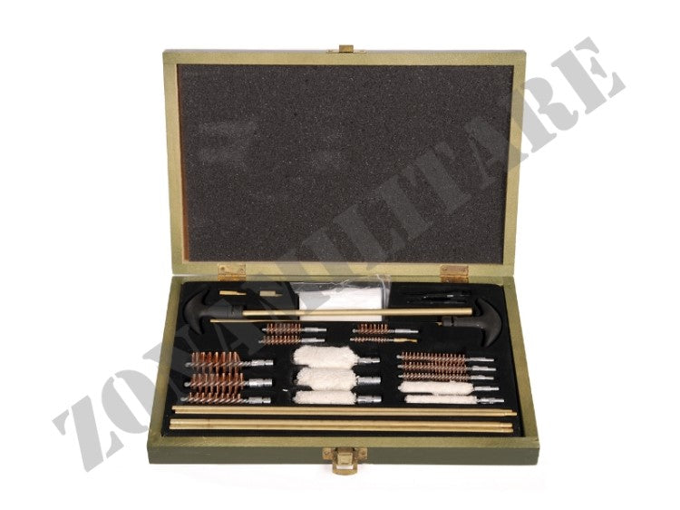 Internamente tutti gli accessori utili per la pulizia dell'arma sia lunga che corta.
