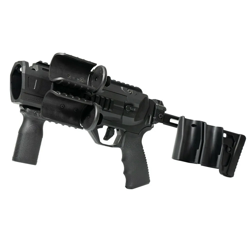 Set di accessori tattici tutto in uno : include un calcio pieghevole, porta granate integrati, un sistema di binari tattici, un'impugnatura e un lanciagranate a doppio colpo, pronto per l'azione appena estratto dalla scatola.