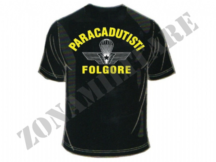 Nella parte posteriore una grande stampa con il logo del brevetto paracadutisti con la scritta Paracadutisti Folgore.