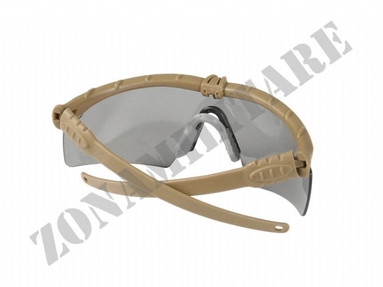 Occhiale con visiera in policarbonato e montatura in materiale TPU resistente agli urti diretti di pallini durante l'uso softair.