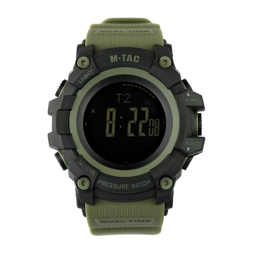 M-Tac è un orologio con una vasta gamma di funzioni . Questo modello sarà un assistente insostituibile per chi conduce una vita attiva e ama le escursioni in montagna; è perfetto anche per i militari. Le caratteristiche uniche dell'orologio M-Tac saranno utili per chi pratica sport estremi come il paracadutismo e fondamentali nella vita di tutti i giorni. Può visualizzare la pressione atmosferica e la temperatura. Monitorando l'orologio, è possibile prevedere in anticipo il peggioramento della salute e distribuire in modo intelligente il carico di lavoro attuale.
